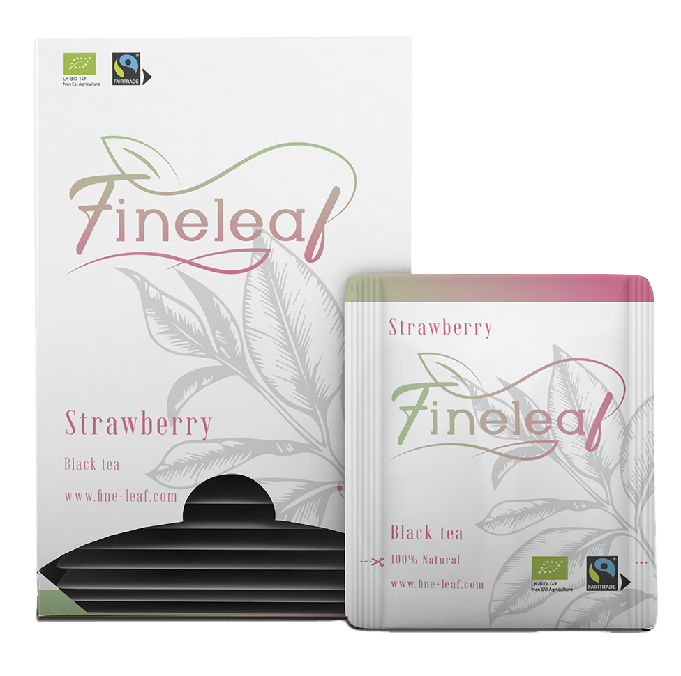 Fineleaf Jordgubb/Strawberry är ett fruktigt ekologiskt och Fairtrade svart te med en uppfriskande smak av jordgubb.