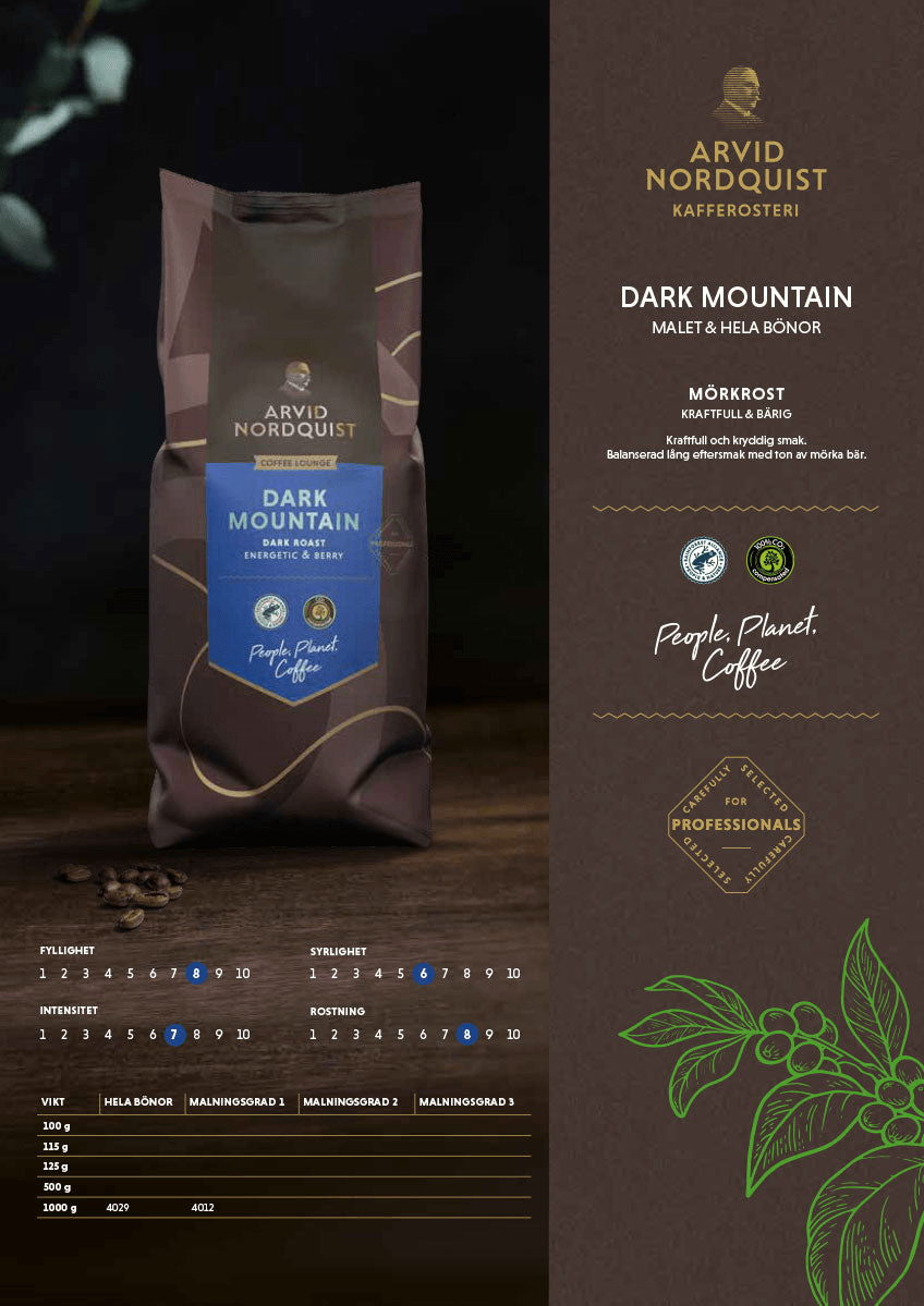 ”Allt vårt kaffe kommer från hållbart certifierade kaffeodlare som garanterar odling med hänsyn till människa och miljö. Dessutom klimatkompenserar vi för den påverkan som fortfarande återstår. Så oavsett vilken av våra kaffesorter du väljer så bidrar vi till en minskad påverkan på människa och miljö. Ditt val gör skillnad!'